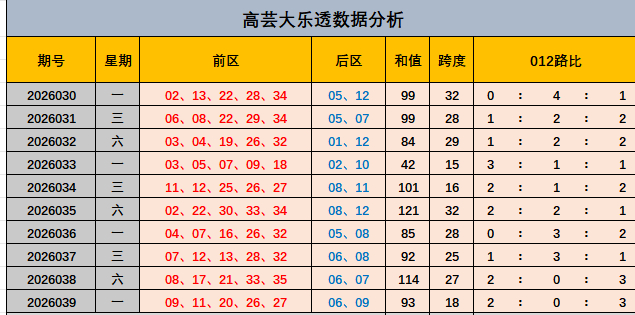 大乐透2026039期开奖奖号前区09,11,20,26,27。后区06,09,前区和值93,跨度18,012路比2:0:3